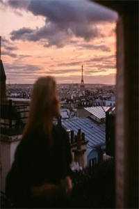 她正在看月光透过来的剪影。